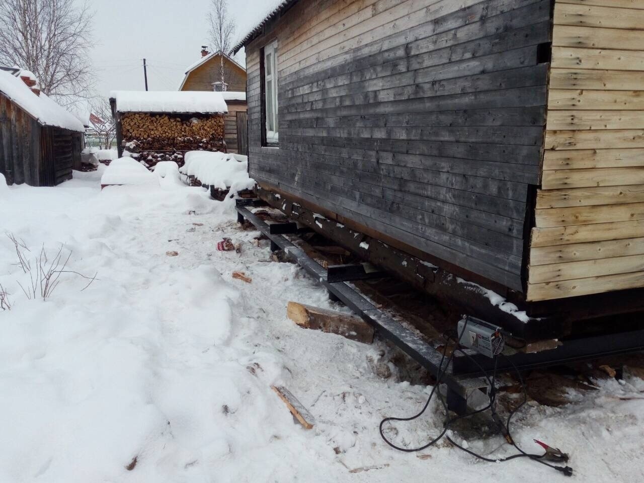 Перед подъемом дома необходимо отключить и демонтировать все коммуникации. Это позволит избежать аварии.